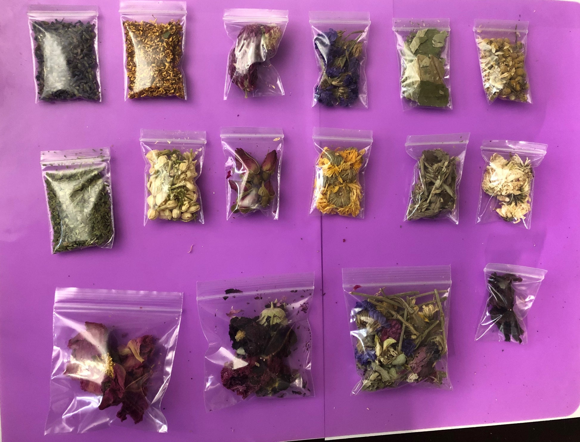 The chamomile, osmanthus, lavender, and wormwood are a finer structure more suitable for fragrance, teas, and sachets over for example resin molds.