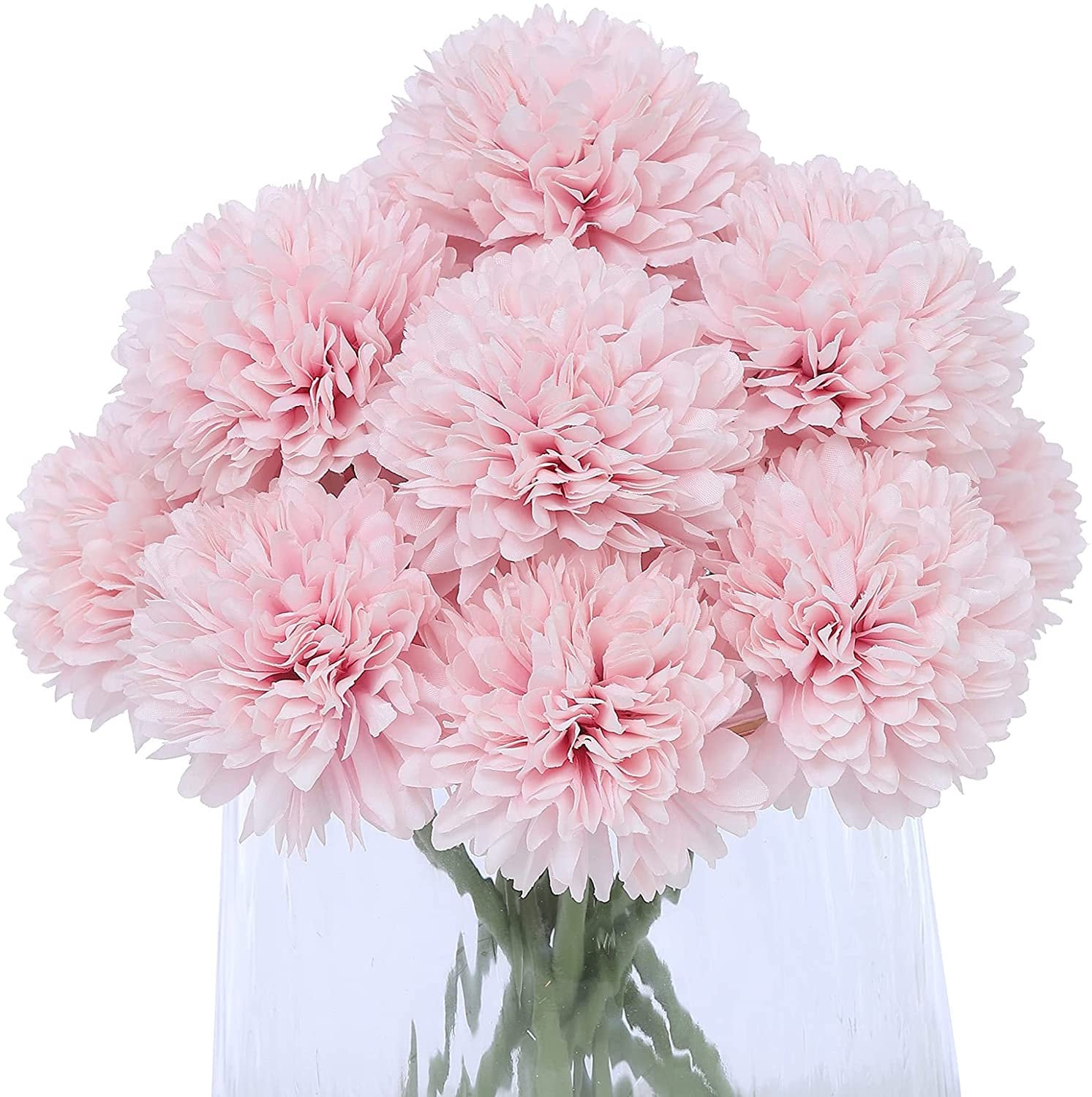 Stems of Chrysanthemums, purchase individually or as a bundle. Each Mum measures 11 inches long with a 2.6" flower head. The flowers heads are made of silk. The stem has a bendable wire for arranging. These artificial Chrysanthemum flowers are great for tables, wedding, home, party, garden, arrangement, office, and centerpiece decor.